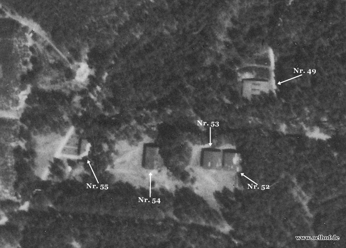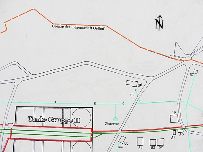 Bei den Gebäuden Nr. 52 und Nr. 53 hat es sich wahrscheinlich um Lagerschuppen für Rohre bzw. Material der Tankanlage gehandelt. Zusammen mit dem Lagerschuppen Nr. 49, dem Lagerschuppen Nr. 54 und der Werkstatt in Gebäude Nr. 55 bildeten die Gebäude einen Komplex von Werkstatt und Lagerhaltung, zur Instandhaltung und dem weiteren Ausbau der Anlagen im Ölhof. Auf einem Ausschnitt eines Luftbildes vom April 1945 sind alle Lagerschuppen abgebildet. Interessant ist die Bemerkung, dass zu den Lagerschuppen Nr. 52 bis Nr. 54 auf den Luftbildern, bis auf dünne Spuren in der Vegetation, keine Zufahrten bestehen. Dies könnte ein Hinweis darauf sein, dass in diesen Schuppen zum Zeitpunkt der Aufnahme Ersatzteile und Material eingelagert waren, die nicht ständig gebraucht wurden, da die Anlagen bis auf das Heizwerk nahezu fertiggestellt waren.