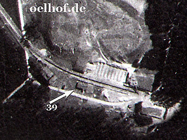 Die hier installierten Pumpen dienten sowohl zur Be,- und Entladung der Kesselwagen auf der Verladeanlage (Nr. 64), als auch zur Beschickung der gesamten Behältergruppe V. Auf dem nachfolgenden Luftbild von 1945 ist das Gebäude Nr. 39 deutlich zu erkennen.