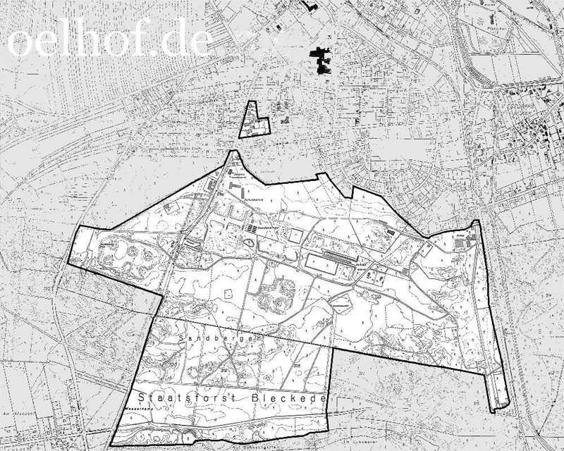 Südlich von Bleckede im Waldgebiet, jeweils auf der Hälfte zwischen den Ortschaften Niendorf und Breetze liegt das Areal Oelhof. Im Jahre 1945 gehörten unterschiedliche Grundstücke zum Oelhof in Bleckede. Die gesamte Fläche betrug mehr als 150 ha. Der heute in der Verwaltung der Bundesanstalt für Immobilienaufgaben stehende Grundbesitz in Bleckede beträgt nahezu 120 ha.