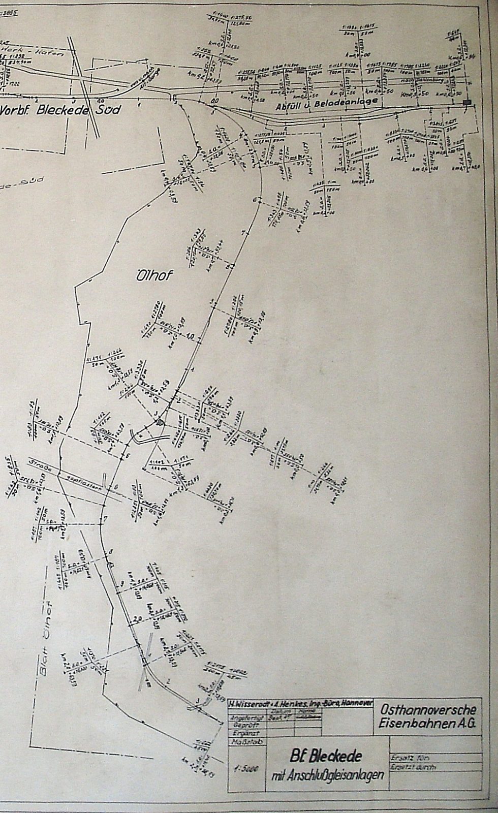 Bild 2: Gleisplan Oelhof Bleckede, Ausschnitt, Stand 1947, Quelle: OHE AG, Celle.