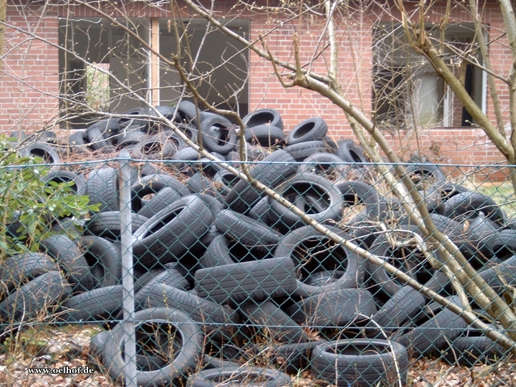 Seit Mitte der neunziger Jahre waren alle Gebäude im ehemaligen Krankenhaus mehr oder weniger dem Verfall preisgegeben. Das Gebäude der Patientenaufnahme bzw. der Untersuchungs- und Behandlungstrakt blieben nicht verschont. Eines Tages wurden illegal Altreifen auf der Einfahrt vor dem Behandlungstrakt „entsorgt“.