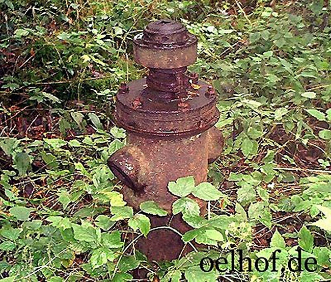 Ein verrosteter Hydrant ist ein letztes Relikt der Löschwasserverteilung. Ein Netz aus Stahlrohren durchzog das gesamte Gelände. Bei Bauarbeiten zu einem Fahrradweg in der Breetzer Str. wurde ein Stück der Wasserleitung wieder ans Tageslicht gebracht.