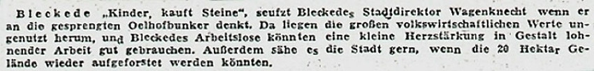 Zur richtigen Darstellung der Sachverhalte dieses Artikels folgen hier weitere Berichte zu diesen Themen. Die nachfolgenden Ausrisse aus der Landeszeitung sind längeren Berichten über Stadtratssitzungen in Bleckede aus dem Jahre 1954 entnommen.